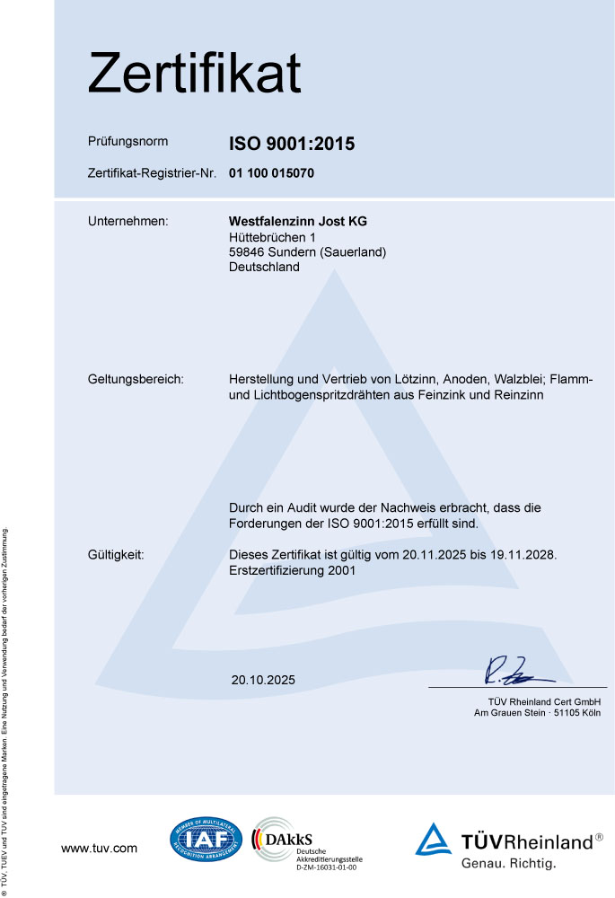 Die hohe Qualität unserer Produkte hat oberste Priorität. Daher haben wir unsere Qualitätspolitik bereits 2001 nach DIN EN ISO 9001 zertifizieren lassen.